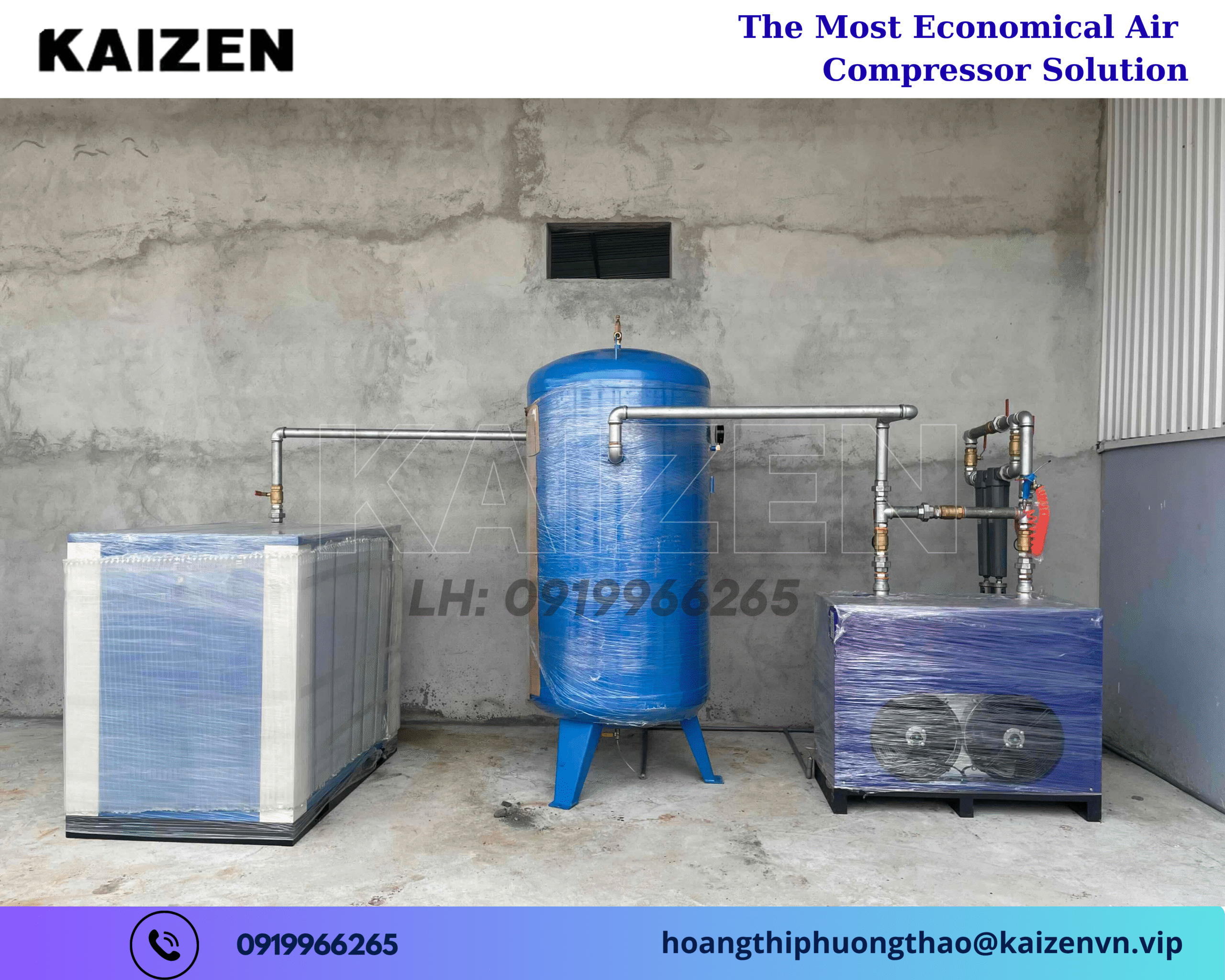 Do giá có thể thay đổi tùy theo cấu hình (có bình chứa, máy sấy khí, lọc tinh…), khách hàng nên liên hệ trực tiếp qua Hotline hoặc Zalo Kaizen để được tư vấn và nhận báo giá chuẩn nhất trong 15 phút.