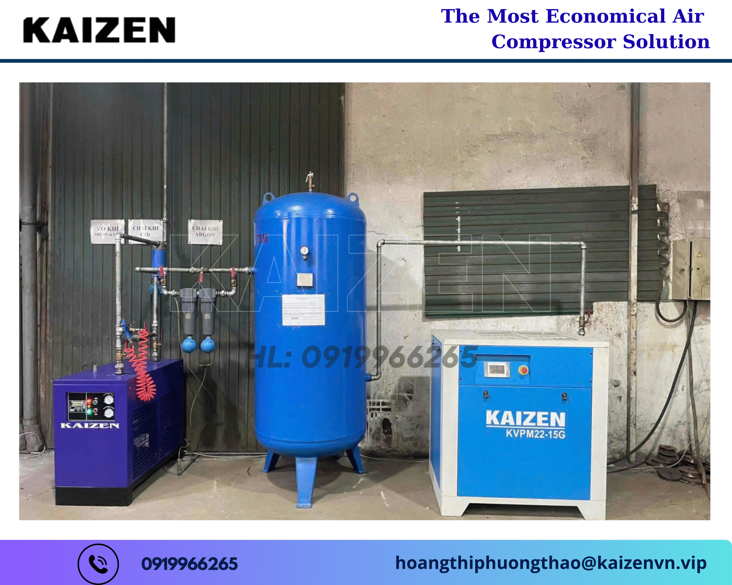 Khi đầu tư máy nén khí trục vít 11KW 15HP KAIZEN, doanh nghiệp không chỉ mua một thiết bị, mà đang đầu tư vào hệ thống khí nén hiệu quả – an toàn – bền vững. Mỗi sản phẩm Kaizen là sự kết hợp hoàn hảo giữa hiệu suất cao – độ ổn định tuyệt đối – chi phí vận hành tối ưu, giúp doanh nghiệp yên tâm sản xuất lâu dài.
