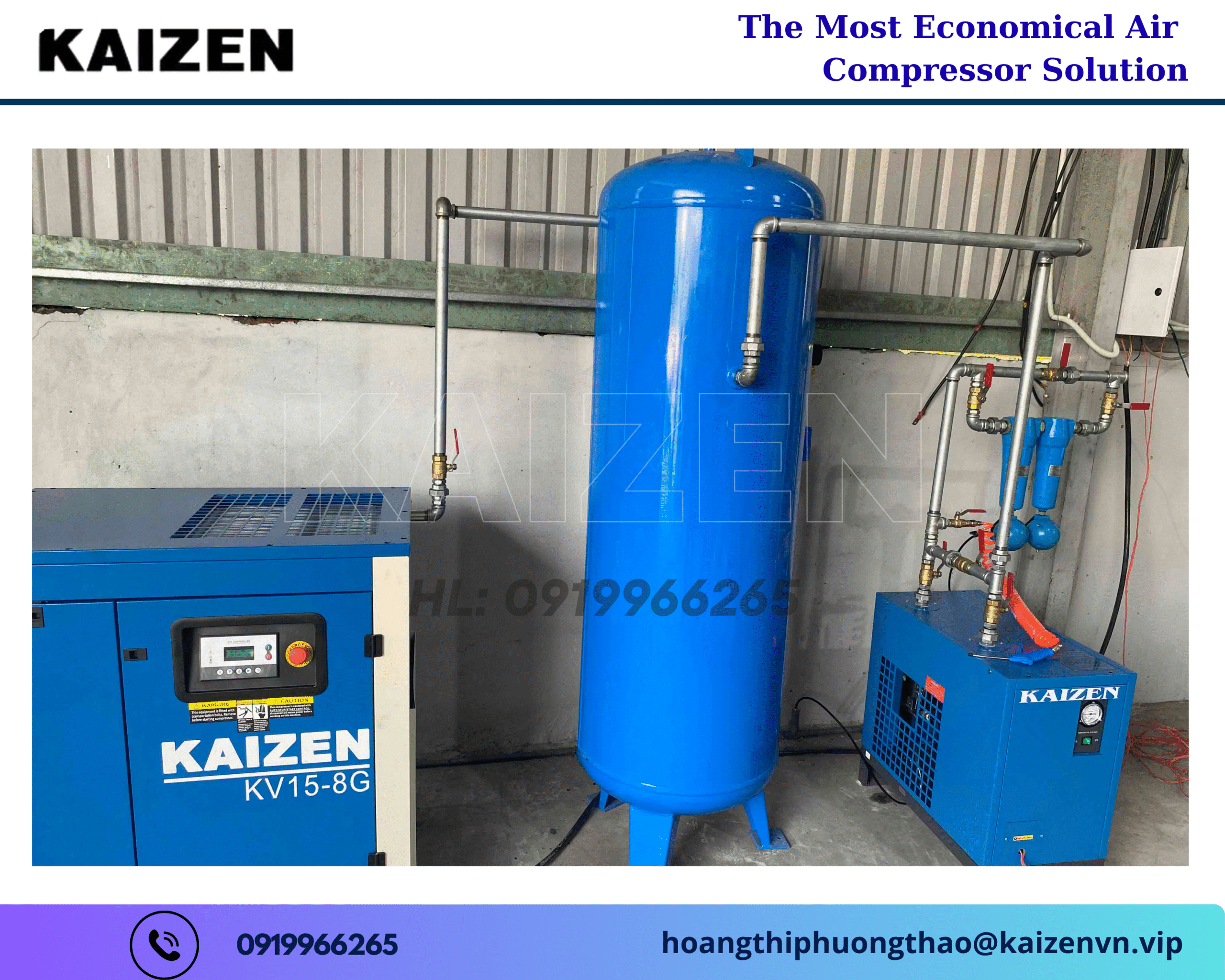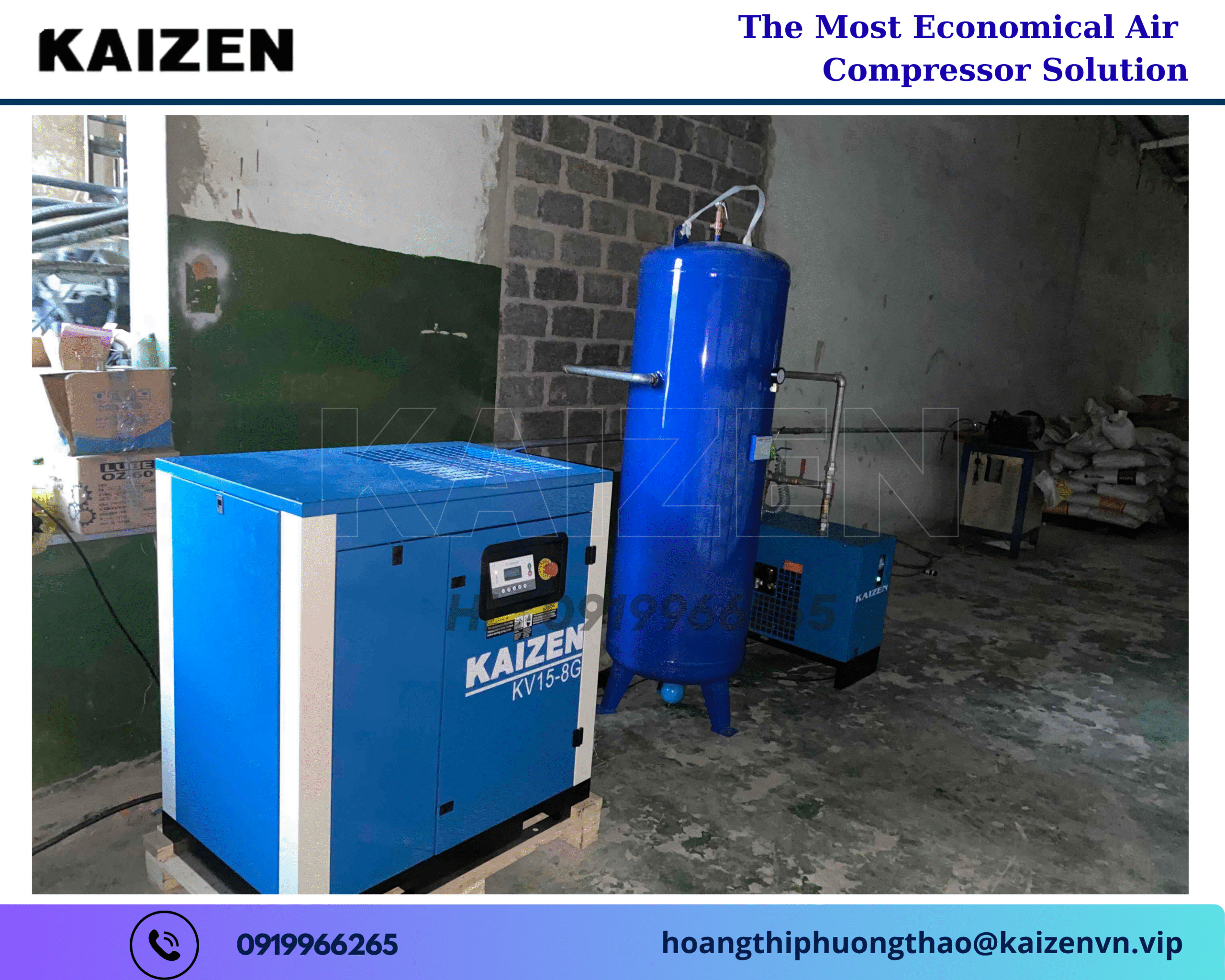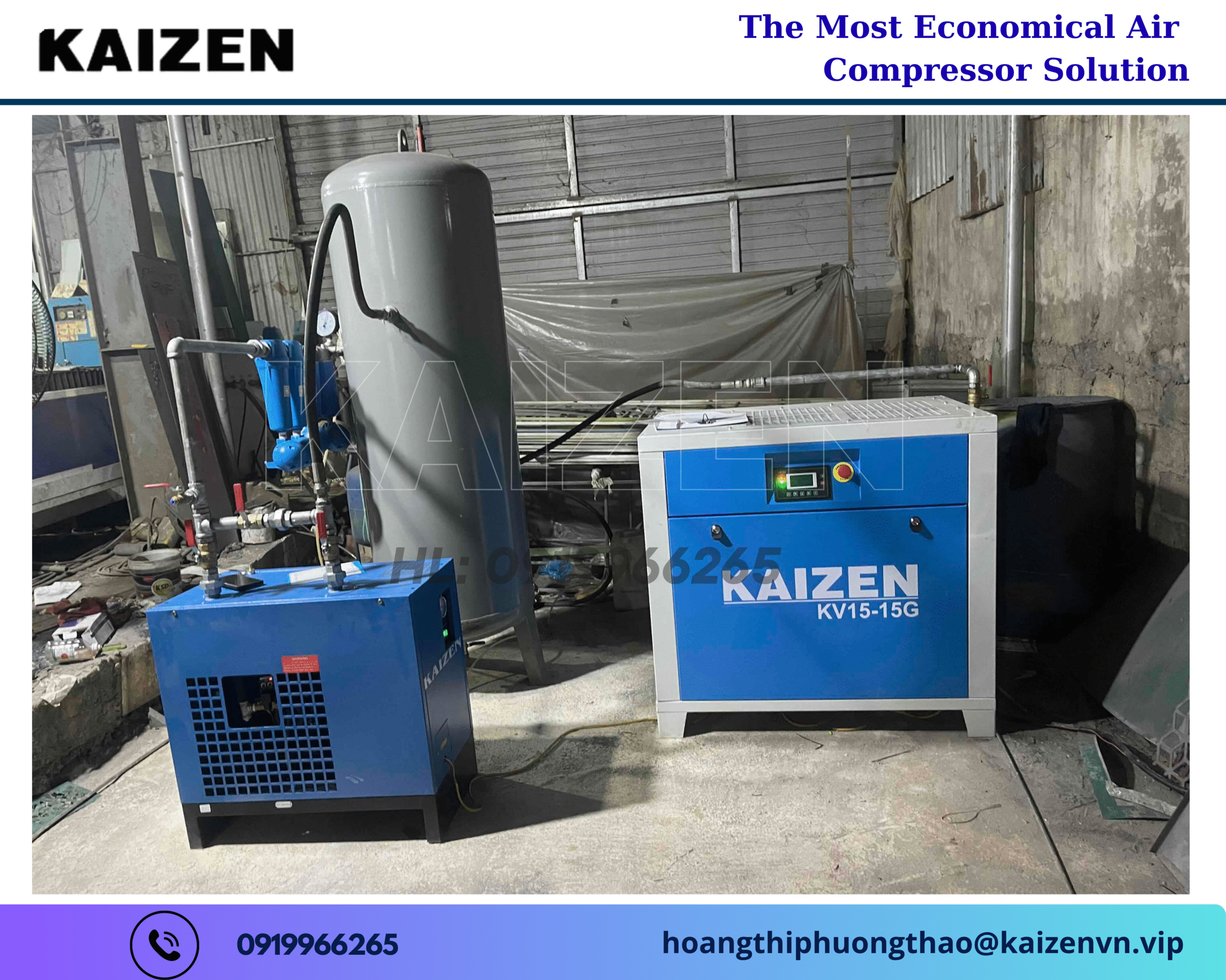 Báo giá máy nén khí trục vít KAIZEN 15KW 20HP & ưu đãi đặc biệt cho khách hàng doanh nghiệp