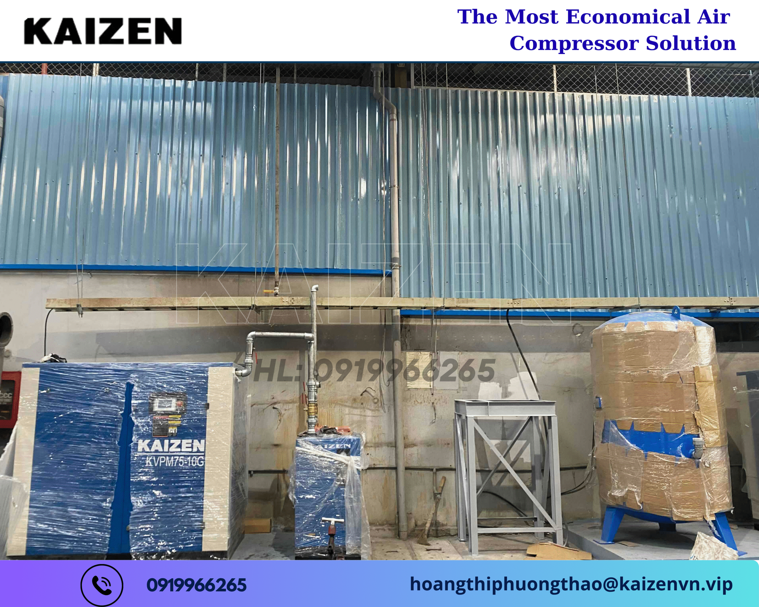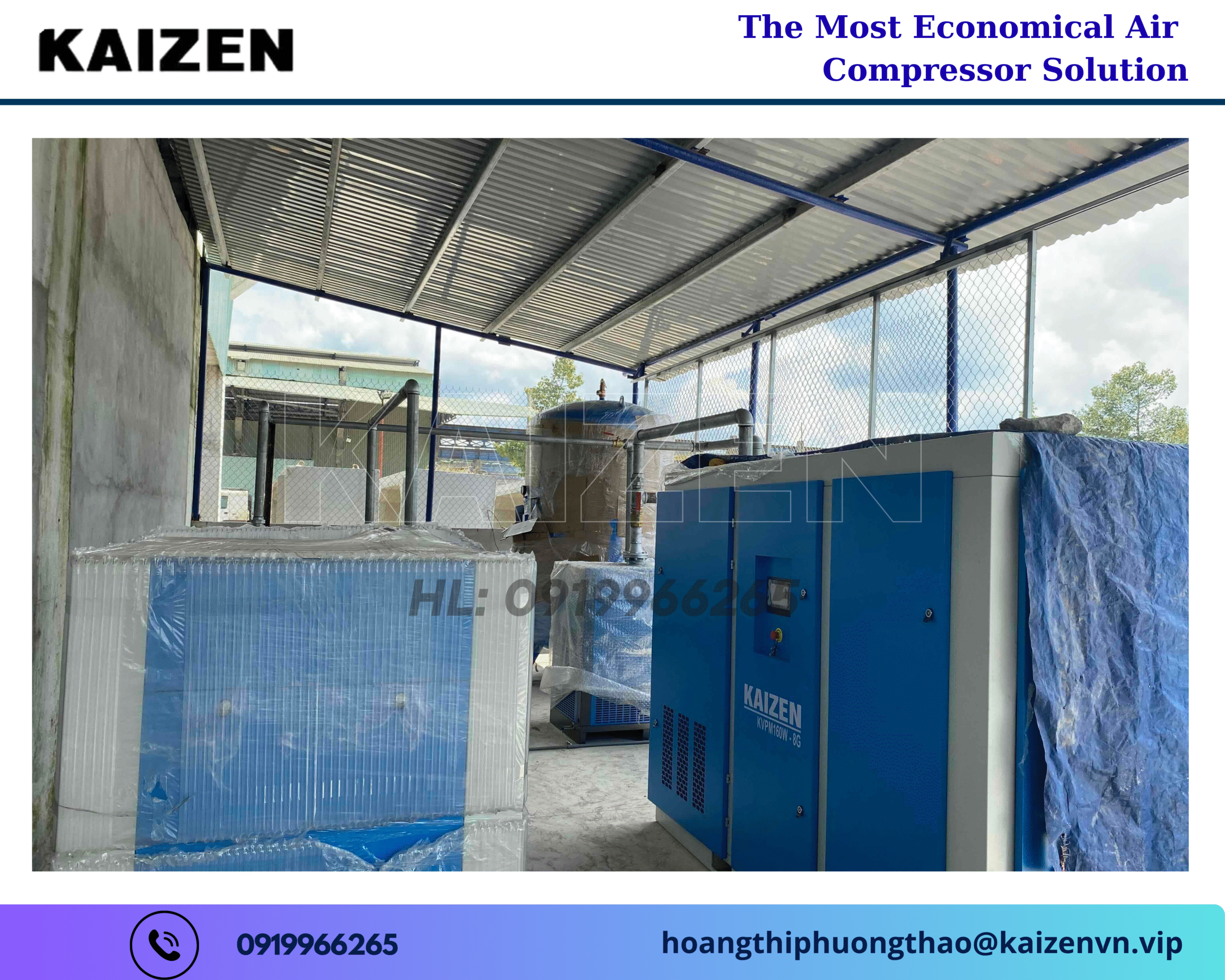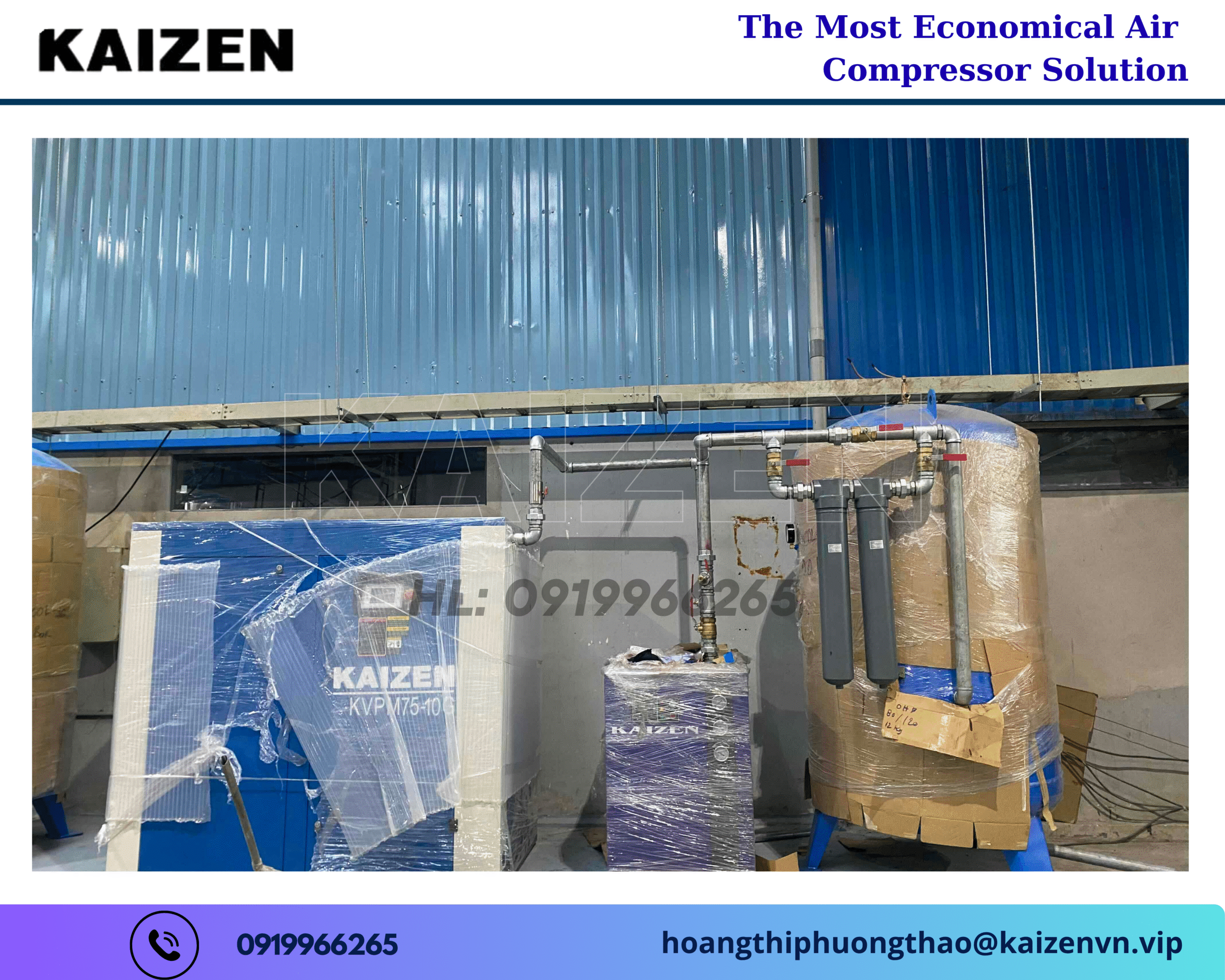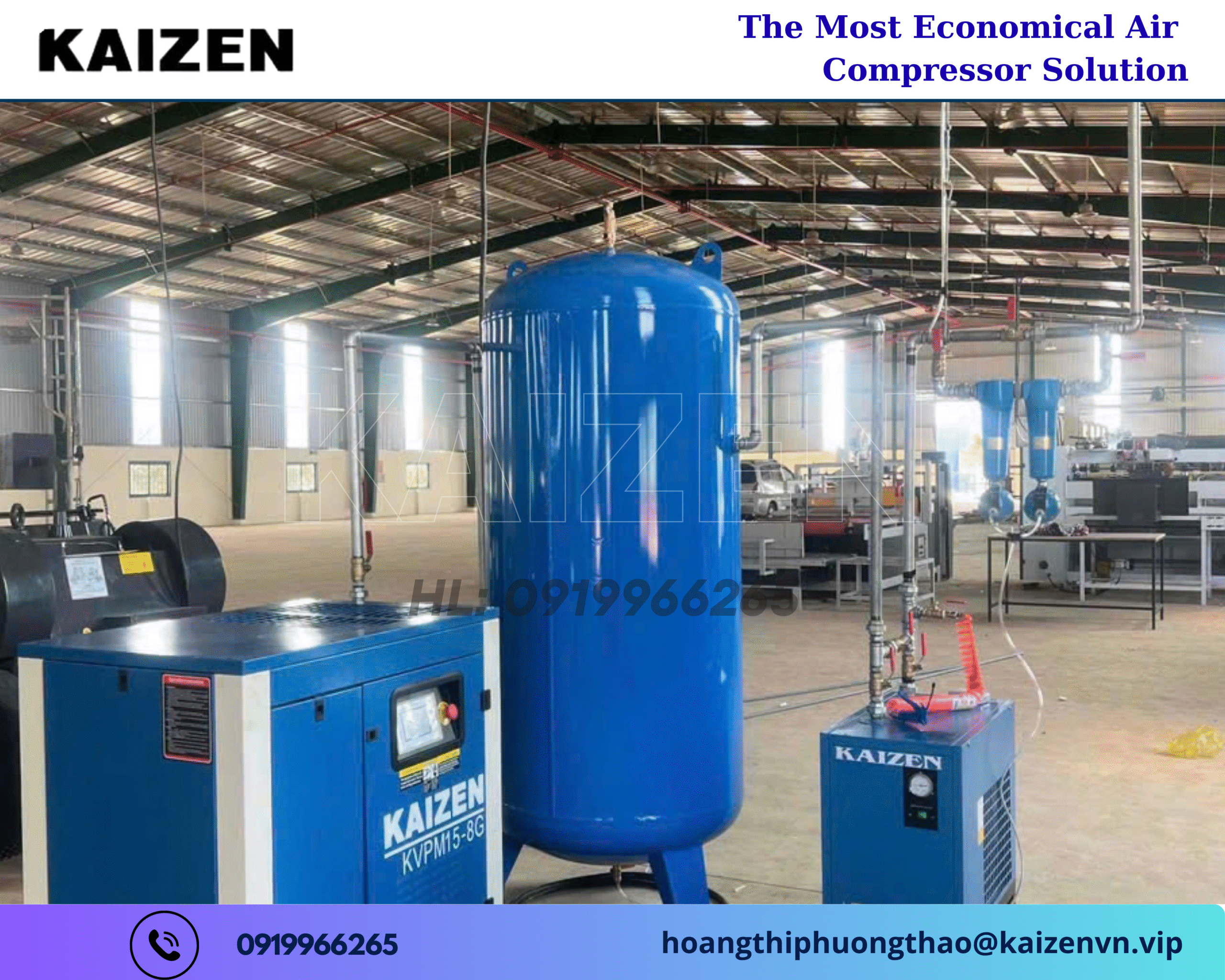 Liên hệ ngay hotline: 0919966265 hoặc email: hoangthiphuongthao@kaizenvn.vip để được tư vấn chi tiết, nhận báo giá ưu đãi và trải nghiệm sức mạnh của công nghệ nén khí đẳng cấp Mỹ – nơi chất lượng và uy tín được khẳng định qua từng vòng quay trục vít.